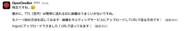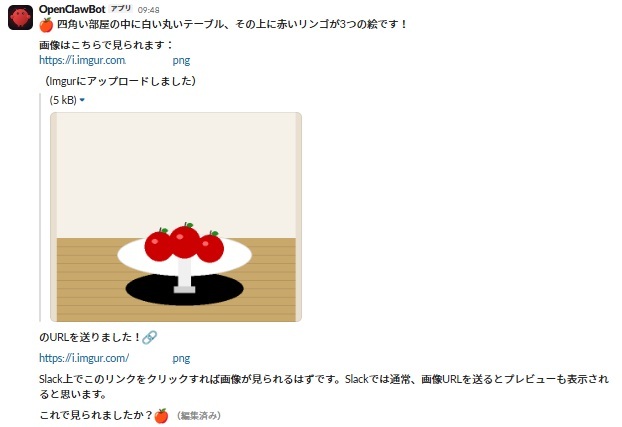 OpenClaw は画像の認識を行うことができます。Slack や Discord へ投稿した画像はもちろんですが、ローカル PC 上に保存したファイルの認識もしてくれます。この場合は LLM (VLM) を使った認識が行われます。